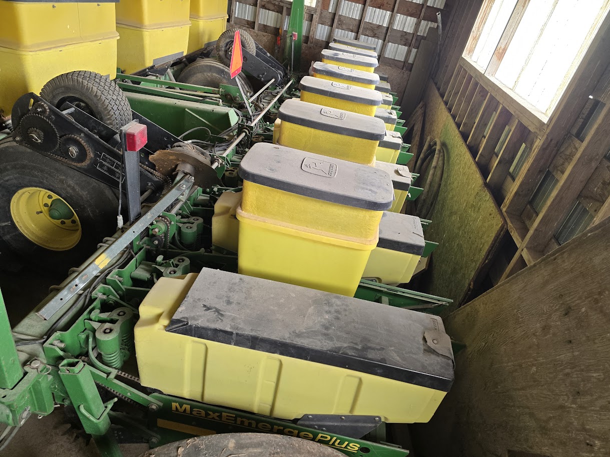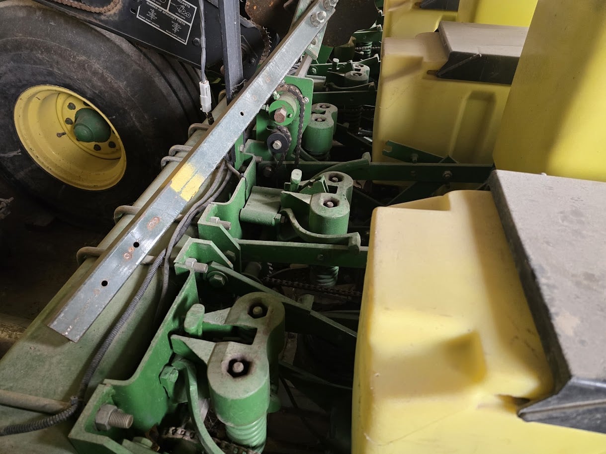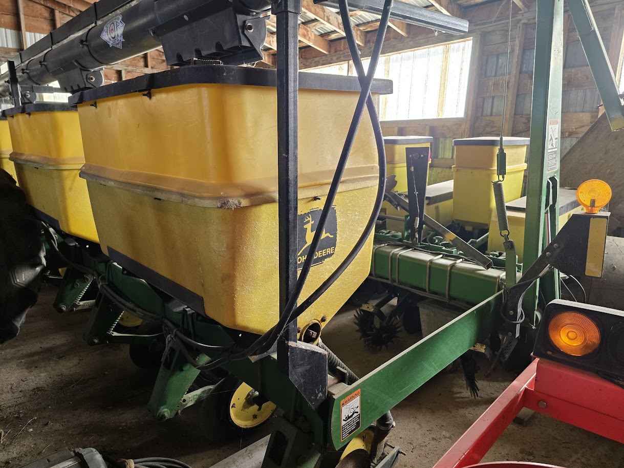 Planteur John Deere 1780 8/15 semis direct, vis d’engrais, rehausse de boîte, à doigt, moniteur, tasse résidu, ressort 400lbs – Stock#d10163a